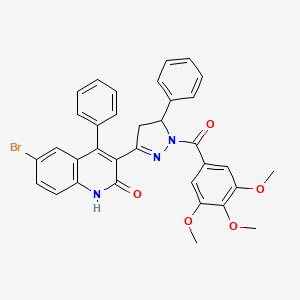 6-bromo-4-phenyl-3-(5-phenyl-1-(3,4,5-trimethoxybenzoyl)-4,5-dihydro-1H-pyrazol-3-yl)quinolin-2(1H)-one is a complex organic compound that belongs to the class of quinolinone derivatives