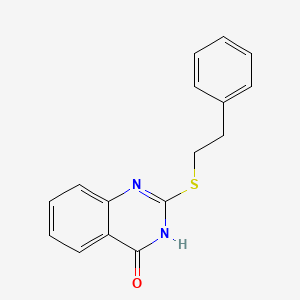 2-[(2-Phenylethyl)sulfanyl]-4(3H)-quinazolinone is a substituted quinazolinone derivative featuring a sulfanyl group at position 2 of the quinazolinone core, linked to a phenylethyl moiety. The quinazolinone scaffold is a bicyclic structure comprising fused benzene and pyrimidinone rings, with diverse biological activities attributed to its ability to mimic purine bases and interact with enzymatic targets .