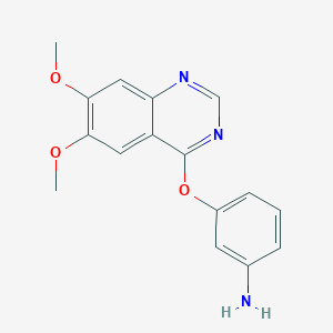 The mechanism by which 3-[(6,7-Dimethoxy-4-quinazolinyl)oxy]aniline exerts its effects involves its interaction with molecular targets such as enzymes and receptors. The methoxy groups enhance the compound's ability to penetrate cell membranes, while the aniline group can form hydrogen bonds with biological targets. The specific pathways involved depend on the biological context and the derivatives synthesized from this compound.