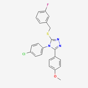 The mechanism of action of 4-(4-chlorophenyl)-3-[(3-fluorobenzyl)sulfanyl]-5-(4-methoxyphenyl)-4H-1,2,4-triazole involves its interaction with specific molecular targets and pathways. The compound may exert its effects by binding to enzymes or receptors, inhibiting or activating specific biochemical pathways. The exact molecular targets and pathways involved depend on the specific biological activity being studied.