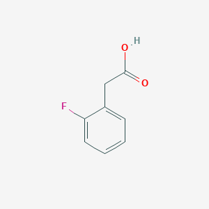 Synthetic Routes and Reaction Conditions: 2-Fluorophenylacetic acid can be synthesized through several methods. One common approach involves the halogenation of phenylacetic acid. This process typically uses fluorinating agents such as hydrogen fluoride or fluorine gas under controlled conditions to introduce the fluorine atom at the desired position on the benzene ring .
