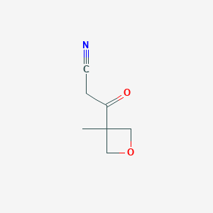 3-(3-Methyloxetan-3-yl)-3-oxopropanenitrile is a chemical compound with the molecular formula C7H9NO2. It is characterized by the presence of an oxetane ring, which is a four-membered cyclic ether, and a nitrile group. The compound is of interest in various fields of scientific research due to its unique structural features and reactivity.