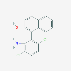 The synthesis of 1-(2-Amino-3,6-dichlorophenyl)naphthalen-2-ol involves multiple steps. One common method includes the reaction of 2-naphthol with 2-amino-3,6-dichlorobenzene under specific conditions . The reaction typically requires a catalyst and controlled temperature to ensure the desired product is obtained. Industrial production methods may involve similar synthetic routes but on a larger scale, with optimizations for yield and purity.