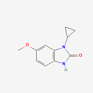 The mechanism of action of 1-Cyclopropyl-6-methoxy-1H-benzo[d]imidazol-2(3H)-one involves its interaction with specific molecular targets. The compound may bind to enzymes or receptors, modulating their activity and leading to various biological effects. The exact pathways and targets depend on the specific application and context of use.