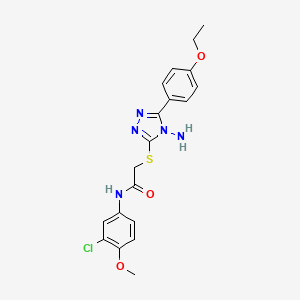 The synthesis of 2-{[4-amino-5-(4-ethoxyphenyl)-4H-1,2,4-triazol-3-yl]sulfanyl}-N-(3-chloro-4-methoxyphenyl)acetamide typically involves multiple steps. One common method includes the reaction of 4-ethoxyphenylhydrazine with carbon disulfide and potassium hydroxide to form the corresponding 1,2,4-triazole derivative. This intermediate is then reacted with 3-chloro-4-methoxyaniline under specific conditions to yield the final product .