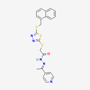 2-[[5-(naphthalen-1-ylmethylsulfanyl)-1,3,4-thiadiazol-2-yl]sulfanyl]-N-[(Z)-1-pyridin-4-ylethylideneamino]acetamide is a complex organic compound known for its unique structural features and potential applications in various scientific fields. This compound contains a thiadiazole ring, a naphthalene moiety, and a pyridine ring, making it a subject of interest in medicinal chemistry and material science.