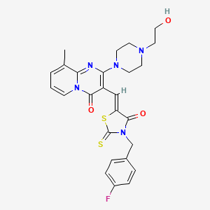 3-{(Z)-[3-(4-fluorobenzyl)-4-oxo-2-thioxo-1,3-thiazolidin-5-ylidene]methyl}-2-[4-(2-hydroxyethyl)piperazin-1-yl]-9-methyl-4H-pyrido[1,2-a]pyrimidin-4-one: can undergo various chemical reactions, including: