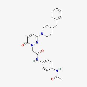 The synthesis of N-(4-acetamidophenyl)-2-(3-(4-benzylpiperidin-1-yl)-6-oxopyridazin-1(6H)-yl)acetamide typically involves multi-step organic reactions. The process may start with the preparation of intermediate compounds such as 4-acetamidophenyl acetic acid, benzylpiperidine, and oxopyridazine derivatives. These intermediates are then subjected to condensation reactions, often under controlled temperature and pH conditions, to form the final compound.