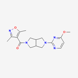 2-[5-(3,5-Dimethyl-1,2-oxazole-4-carbonyl)-octahydropyrrolo[3,4-c]pyrrol-2-yl]-4-methoxypyrimidine is a complex heterocyclic compound that features a unique combination of oxazole, pyrrolo, and pyrimidine rings