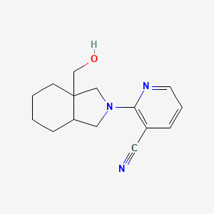 2-[3a-(hydroxymethyl)-octahydro-1H-isoindol-2-yl]pyridine-3-carbonitrile is a complex organic compound that features a unique structure combining an isoindoline and a pyridine ring