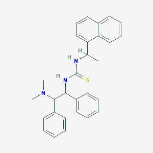 The synthesis of 1-[2-(Dimethylamino)-1,2-diphenylethyl]-3-[1-(naphthalen-1-yl)ethyl]thiourea typically involves multiple steps, starting with the preparation of intermediate compounds. One common method involves the reaction of 1-(naphthalen-1-yl)ethylamine with 1,2-diphenylethanone to form an intermediate, which is then reacted with dimethylamine and thiourea under controlled conditions to yield the final product .