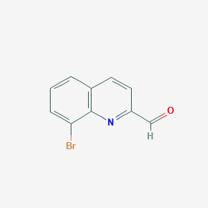 This compound is a specific halogenated quinoline derivative that has garnered attention as a versatile intermediate in organic synthesis. Its structure, featuring a bromine atom at the 8-position and an aldehyde at the 2-position, makes it a valuable building block for constructing more complex molecules, particularly ligands for coordination chemistry and novel bioactive compounds. Research on this compound often focuses on its synthesis and subsequent reactions to create new chemical entities with potential applications in various fields of chemistry. For instance, it can be condensed with diamines to form quinoline-based benzimidazoles or bis-imines. mdpi.comnih.gov