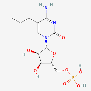 The mechanism of action of 5-n-Propylcytidine 5’-monophosphate involves its incorporation into RNA or DNA by polymerases, leading to the disruption of nucleic acid synthesis. The propyl group modification can enhance the compound’s binding affinity to specific enzymes or molecular targets, thereby increasing its efficacy as an inhibitor or substrate . The compound may also interact with kinases and other enzymes involved in nucleotide metabolism, affecting cellular processes and pathways .