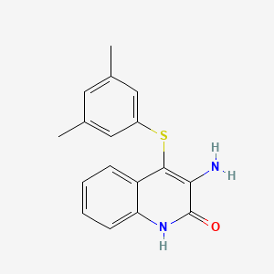 2(1H)-Quinolinone, 3-amino-4-((3,5-dimethylphenyl)thio)- is a heterocyclic compound that features a quinolinone core with an amino group at the 3-position and a 3,5-dimethylphenylthio substituent at the 4-position. This compound is of interest due to its potential biological activities and applications in medicinal chemistry.