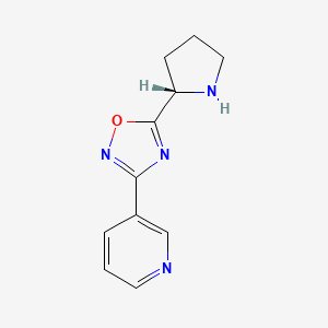 The synthesis of (S)-3-(Pyridin-3-yl)-5-(pyrrolidin-2-yl)-1,2,4-oxadiazole typically involves the cyclization of appropriate precursors under controlled conditions. One common method involves the reaction of pyridine-3-carboxylic acid hydrazide with pyrrolidine-2-carboxylic acid, followed by cyclization in the presence of a dehydrating agent such as phosphorus oxychloride. The reaction is usually carried out under reflux conditions to ensure complete cyclization and formation of the oxadiazole ring.