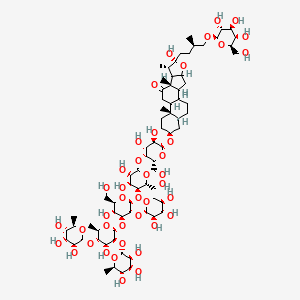 (6R,7S,9S,13S,16S,18S)-16-[(2R,3R,4R,5R,6R)-5-[(2S,3R,4R,5S,6R)-3,4-dihydroxy-5-[(2S,3R,4S,5R,6R)-5-hydroxy-6-(hydroxymethyl)-4-[(2R,3S,4S,5S,6R)-4-hydroxy-6-methyl-3,5-bis[[(2R,3S,4S,5S,6R)-3,4,5-trihydroxy-6-methyloxan-2-yl]oxy]oxan-2-yl]oxy-3-[(2S,3R,4S,5R)-3,4,5-trihydroxyoxan-2-yl]oxyoxan-2-yl]oxy-6-(hydroxymethyl)oxan-2-yl]oxy-3,4-dihydroxy-6-(hydroxymethyl)oxan-2-yl]oxy-6-hydroxy-7,9,13-trimethyl-6-[(3R)-3-methyl-4-[(2R,3R,4S,5S,6R)-3,4,5-trihydroxy-6-(hydroxymethyl)oxan-2-yl]oxybutyl]-5-oxapentacyclo[10.8.0.02,9.04,8.013,18]icosan-10-one |
