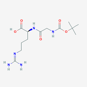 This compound, with its defined chemical structure and molecular weight, serves as a useful reference compound. Its distinct retention time in reverse-phase HPLC and its clear fragmentation pattern in tandem mass spectrometry make it a suitable standard for several applications. In HPLC, it can be used to calibrate retention times and to assess column performance. In mass spectrometry, the known mass of the intact molecule and its predictable fragmentation products upon collision-induced dissociation can be used to calibrate mass analyzers and to optimize ionization and fragmentation parameters. bldpharm.combuchem.com The presence of the Boc protecting group, the glycine (B1666218) linker, and the arginine residue provides a simple yet representative model for studying the chromatographic and mass spectrometric behavior of modified peptides.