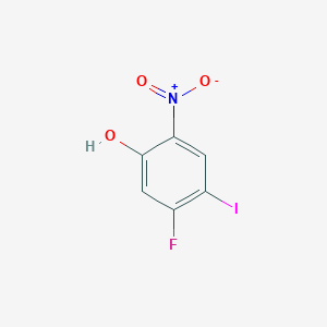 5-Fluoro-4-iodo-2-nitrophenol serves as a strategic starting material for the synthesis of pharmaceutical intermediates. The nitro group can be readily reduced to an amine, a fundamental transformation for building a vast array of bioactive molecules. The presence of both fluorine and iodine offers multiple pathways for molecular elaboration. Fluorine is a common element in modern pharmaceuticals, known for enhancing metabolic stability and binding affinity. The iodine atom, being a large and reactive halogen, is an excellent leaving group for nucleophilic substitution reactions and a key participant in cross-coupling reactions to form new carbon-carbon or carbon-heteroatom bonds. smolecule.com