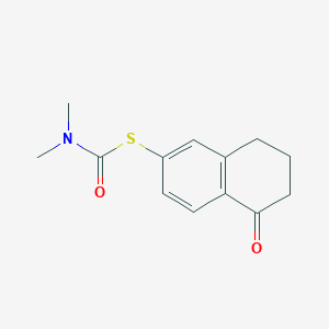 The mechanism by which N,N-Dimethyl-1-[(5-oxo-5,6,7,8-tetrahydronaphthalen-2-yl)sulfanyl]formamide exerts its effects involves its interaction with specific molecular targets and pathways. The compound may act as an inhibitor or activator of certain enzymes, modulating biochemical processes within cells. The exact molecular targets and pathways involved would depend on the specific application and context in which the compound is used.