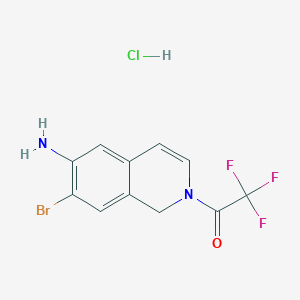 The synthesis of 1-(6-Amino-7-bromoisoquinolin-2(1H)-yl)-2,2,2-trifluoroethanone hydrochloride typically involves multiple steps. One common synthetic route starts with the bromination of isoquinoline to introduce the bromine atom at the 7-position. This is followed by the introduction of the amino group at the 6-position through nucleophilic substitution reactions. The trifluoroethanone moiety is then introduced via a Friedel-Crafts acylation reaction using trifluoroacetyl chloride. The final step involves the formation of the hydrochloride salt by treating the compound with hydrochloric acid.