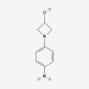 The synthesis of this compound itself can be achieved through several routes. One common method involves the reaction of a protected azetidin-3-ol with a suitable 4-nitro-substituted aromatic compound, followed by the reduction of the nitro group to an amine. For example, coupling azetidin-3-ol with 4-nitrobenzaldehyde (B150856) and subsequent reduction can yield the desired product. Another approach involves the nucleophilic substitution of a leaving group on the azetidine nitrogen with 4-bromoaniline, followed by a palladium-catalyzed amination.