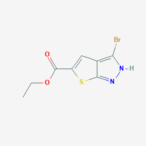 Ethyl 3-bromo-1H-thieno[2,3-c]pyrazole-5-carboxylate is a heterocyclic compound that features a unique structure combining a thieno and pyrazole ring. This compound is of significant interest in the field of medicinal chemistry due to its potential biological activities and applications in various scientific research areas.