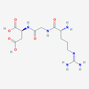 The synthesis of (S)-2-(2-(®-2-Amino-5-guanidinopentanamido)acetamido)succinic acid typically involves multi-step organic synthesis. The process begins with the preparation of the core succinic acid structure, followed by the sequential addition of amino and guanidino groups. Common reagents used in these steps include protecting groups to ensure selective reactions at specific sites. Reaction conditions often involve controlled temperatures and pH levels to optimize yields and purity.