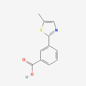 The mechanism of action of 3-(5-Methyl-1,3-thiazol-2-yl)benzoic acid involves its interaction with specific molecular targets and pathways. For example, its antimicrobial activity is believed to result from the inhibition of key enzymes involved in bacterial cell wall synthesis. In cancer research, it has been shown to induce apoptosis in cancer cells by activating specific signaling pathways .