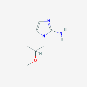 The synthesis of 1-(2-Methoxypropyl)-1H-imidazol-2-amine typically involves the reaction of 1H-imidazole-2-amine with 2-methoxypropyl halides under basic conditions. The reaction is usually carried out in an organic solvent such as dimethylformamide (DMF) or dimethyl sulfoxide (DMSO) with a base like potassium carbonate (K2CO3) or sodium hydride (NaH). The reaction conditions often include heating the mixture to a temperature range of 60-80°C for several hours to ensure complete conversion.