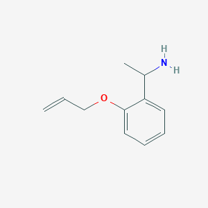 1-[2-(Allyloxy)phenyl]ethanamine (CAS Ref: 10-F695133) is a secondary amine featuring a phenyl ring substituted with an allyloxy group (–O–CH₂–CH=CH₂) at the 2-position and an ethylamine (–CH₂–NH₂) group at the benzylic position. This compound is structurally characterized by its conjugated allyl ether moiety, which may influence its electronic properties and reactivity. It is commercially available in research quantities (1 mg–25 g) for applications in organic synthesis and pharmaceutical intermediates .