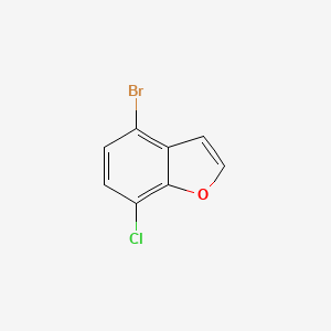 This compound is a polysubstituted heterocyclic compound featuring a benzofuran core with a bromine atom at the 4-position and a chlorine atom at the 7-position.