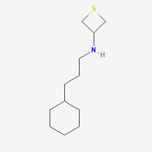The mechanism of action of N-(3-Cyclohexylpropyl)thietan-3-amine involves its interaction with specific molecular targets and pathways. For example, in the context of its antidepressant activity, the compound may modulate neurotransmitter systems such as the adrenergic, serotoninergic, and GABA-ergic systems . It may also interact with enzymes and receptors involved in these pathways, leading to changes in neurotransmitter levels and signaling.