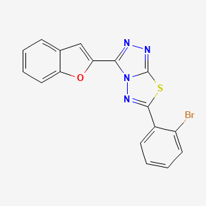The synthesis of 3-(1-Benzofuran-2-yl)-6-(2-bromophenyl)[1,2,4]triazolo[3,4-b][1,3,4]thiadiazole typically involves the cyclization of appropriate precursors under specific conditions. One common method involves the reaction of 2-bromobenzoyl chloride with 2-aminobenzofuran to form an intermediate, which is then cyclized with thiosemicarbazide under acidic conditions to yield the desired triazolo-thiadiazole compound . The reaction conditions often include the use of solvents such as ethanol or acetic acid and may require heating to facilitate the cyclization process.