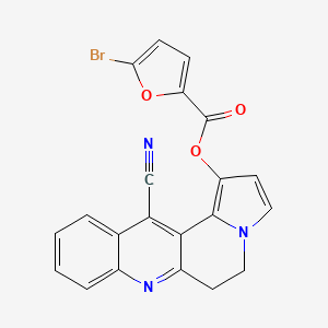 The synthesis of 12-Cyano-5,6-dihydrobenzo[b]pyrrolo[2,1-f][1,6]naphthyridin-1-yl 5-bromo-2-furoate typically involves multi-step organic reactions. One common approach is the cyclization of appropriate precursors under controlled conditions. For instance, starting with a suitable benzo[b]pyrrole derivative, the introduction of cyano and bromo groups can be achieved through nucleophilic substitution reactions. The final step often involves the esterification of the intermediate compound with 5-bromo-2-furoic acid under acidic or basic conditions.