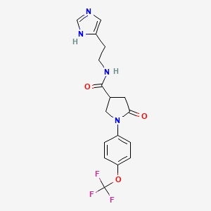N-[2-(1H-imidazol-4-yl)ethyl]-5-oxo-1-[4-(trifluoromethoxy)phenyl]-3-pyrrolidinecarboxamide is a complex organic compound with potential applications in various fields of science. This compound features an imidazole ring, a pyrrolidine ring, and a trifluoromethoxyphenyl group, making it a unique molecule with diverse chemical properties.