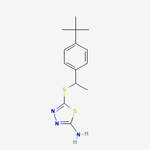 5-{[1-(4-Tert-butylphenyl)ethyl]sulfanyl}-1,3,4-thiadiazol-2-ylamine is unique due to the presence of the tert-butyl group, which can influence its chemical reactivity and biological activity. The bulky tert-butyl group can provide steric hindrance, affecting the compound’s interaction with molecular targets and potentially enhancing its selectivity and potency in biological applications.