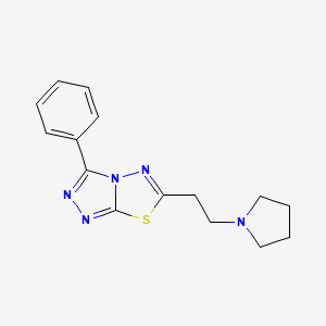 The synthesis of 3-Phenyl-6-[2-(1-pyrrolidinyl)ethyl][1,2,4]triazolo[3,4-b][1,3,4]thiadiazole typically involves the fusion of 1,2,4-triazole and 1,3,4-thiadiazole rings. One common method includes the reaction of 4-amino-5-phenyl-4H-1,2,4-triazole-3-thiol with appropriate alkylating agents under reflux conditions in the presence of a base such as piperidine . Industrial production methods may involve similar synthetic routes but optimized for large-scale production, ensuring higher yields and purity.