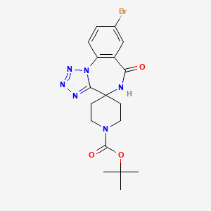 Tert-butyl 8’-bromo-5’,6’-dihydro-6’-oxospiro(piperidine-4,4’-tetraazolo[1,5-a][1,4]benzodiazepine)-1-carboxylate stands out due to its spiro structure, which imparts unique stability and reactivity. This makes it a valuable compound for various applications, particularly in fields requiring stable and versatile chemical scaffolds.