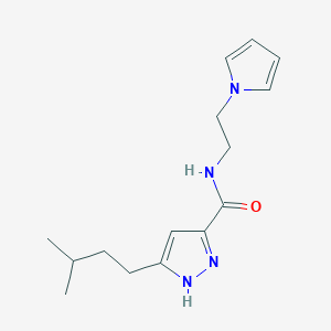 3-isopentyl-N-[2-(1H-pyrrol-1-yl)ethyl]-1H-pyrazole-5-carboxamide is a heterocyclic compound that features a pyrazole ring substituted with an isopentyl group and a pyrrole ring. This compound is of interest due to its potential biological activities and applications in various fields of scientific research.