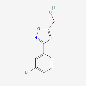 The molecular weight of this compound is 254.08 grams per mole, which reflects the contribution of the bromine substituent to the overall molecular mass. The systematic nomenclature follows International Union of Pure and Applied Chemistry conventions, with alternative designations including [3-(3-bromophenyl)-1,2-oxazol-5-yl]methanol and [3-(3-bromophenyl)isoxazol-5-yl]methanol.