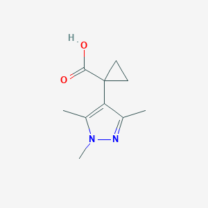 1-(Trimethyl-1H-pyrazol-4-yl)cyclopropane-1-carboxylic acid is a chemical compound that belongs to the class of pyrazole derivatives. Pyrazoles are five-membered heterocyclic compounds containing two nitrogen atoms at positions 1 and 2 of the ring. This particular compound features a cyclopropane ring attached to a trimethylated pyrazol-4-yl group, making it a unique and versatile molecule in various scientific and industrial applications.