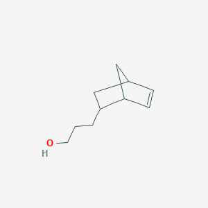 3-(Bicyclo[2.2.1]hept-5-en-2-yl)propan-1-ol is a bicyclic alcohol featuring a norbornene-derived framework with a three-carbon chain terminating in a hydroxyl group. Its structure combines the rigidity of the bicyclo[2.2.1]heptene system with the reactivity of a primary alcohol, making it a versatile intermediate in organic synthesis.