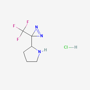 2-[3-(Trifluoromethyl)-3H-diazirin-3-yl]pyrrolidinehydrochloride is a compound that has garnered attention in the field of chemical biology due to its unique diazirine moiety, which is known for its ability to form reactive carbene species upon photolysis. This characteristic enables the compound to act as a photoaffinity label, making it a valuable tool for studying protein interactions and biological pathways.