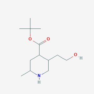 (2R,4S,5R)-4-Boc-5-(2-hydroxyethyl)-2-methylpiperidine, also known as tert-butyl 5-(2-hydroxyethyl)-2-methylpiperidine-4-carboxylate, is a compound with significant biological activity. Its structure includes a piperidine ring that is modified with a tert-butoxycarbonyl (Boc) group and a hydroxyethyl side chain. This compound is of interest in medicinal chemistry due to its potential applications in drug development and its interactions with biological systems.
