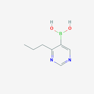 (4-Propylpyrimidin-5-yl)boronic acid is a pyrimidine-based organoboron compound characterized by a boronic acid (-B(OH)₂) group at the 5-position and a propyl substituent at the 4-position of the pyrimidine ring. Pyrimidine boronic acids are widely employed in Suzuki-Miyaura cross-coupling reactions for synthesizing heteroaryl compounds, which are critical in pharmaceutical and materials science research . The propyl substituent modulates electronic and steric properties, influencing reactivity, solubility, and biological interactions.