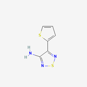 1,2,5-Thiadiazol-3-amine, 4-(2-thienyl)-, is a heterocyclic compound featuring a thiadiazole core fused with a thiophene (2-thienyl) substituent. The thiadiazole ring, characterized by two nitrogen and one sulfur atom in a five-membered arrangement, contributes to its electronic and steric properties, making it a candidate for diverse pharmacological and material science applications.