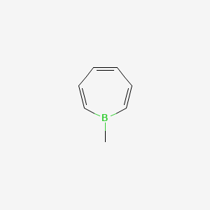1-Methyl-1H-borepin is a seven-membered heterocyclic organic compound containing a boron atom, with the chemical formula C₇H₉B.[1] As a derivative of borepin, it is of significant interest to researchers due to its unique electronic structure and reactivity. Borepins are considered weakly aromatic systems, being isoelectronic with the tropylium cation, a classic 6π-electron aromatic species.[2] The presence of the boron atom with its vacant p-orbital allows for delocalization of the π-electrons within the seven-membered ring, conferring this aromatic character.[2] However, this aromaticity is weaker than in carbocyclic analogues, making borepins intriguing subjects for studying the principles of aromaticity and reactivity.