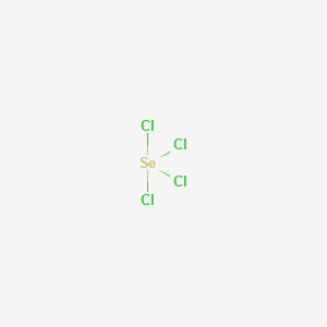 this compound is synthesized by reacting elemental selenium with chlorine gas under controlled conditions. The reaction is typically conducted in a sealed system, followed by sublimation to purify the product . Alternative methods include reacting selenium with sulfuryl chloride (SO₂Cl₂) at room temperature or thionyl chloride (SOCl₂) under heating, producing SeCl₄ alongside sulfur dioxide or sulfur, respectively .