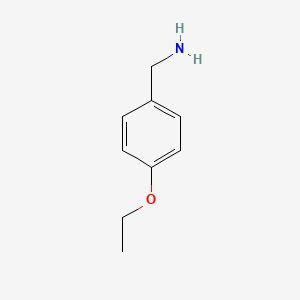 4-Ethoxy-benzylamine is an organic compound with the molecular formula C9H13NO and a molecular weight of 151.21 g/mol . It is a colorless to pale yellow liquid with a characteristic amine odor . This compound is primarily used as an intermediate in organic synthesis and as a reagent in various chemical reactions .