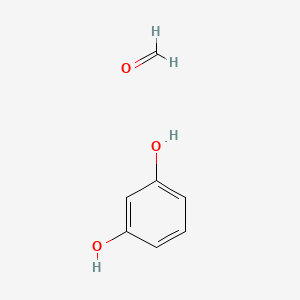 The mechanism of action of formaldehyde, polymer with 1,3-benzenediol involves the formation of strong covalent bonds between the formaldehyde and the hydroxyl groups of 1,3-benzenediol. This results in a highly cross-linked polymer network that imparts the material with its characteristic thermal stability and chemical resistance .